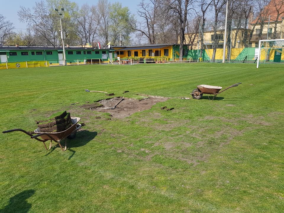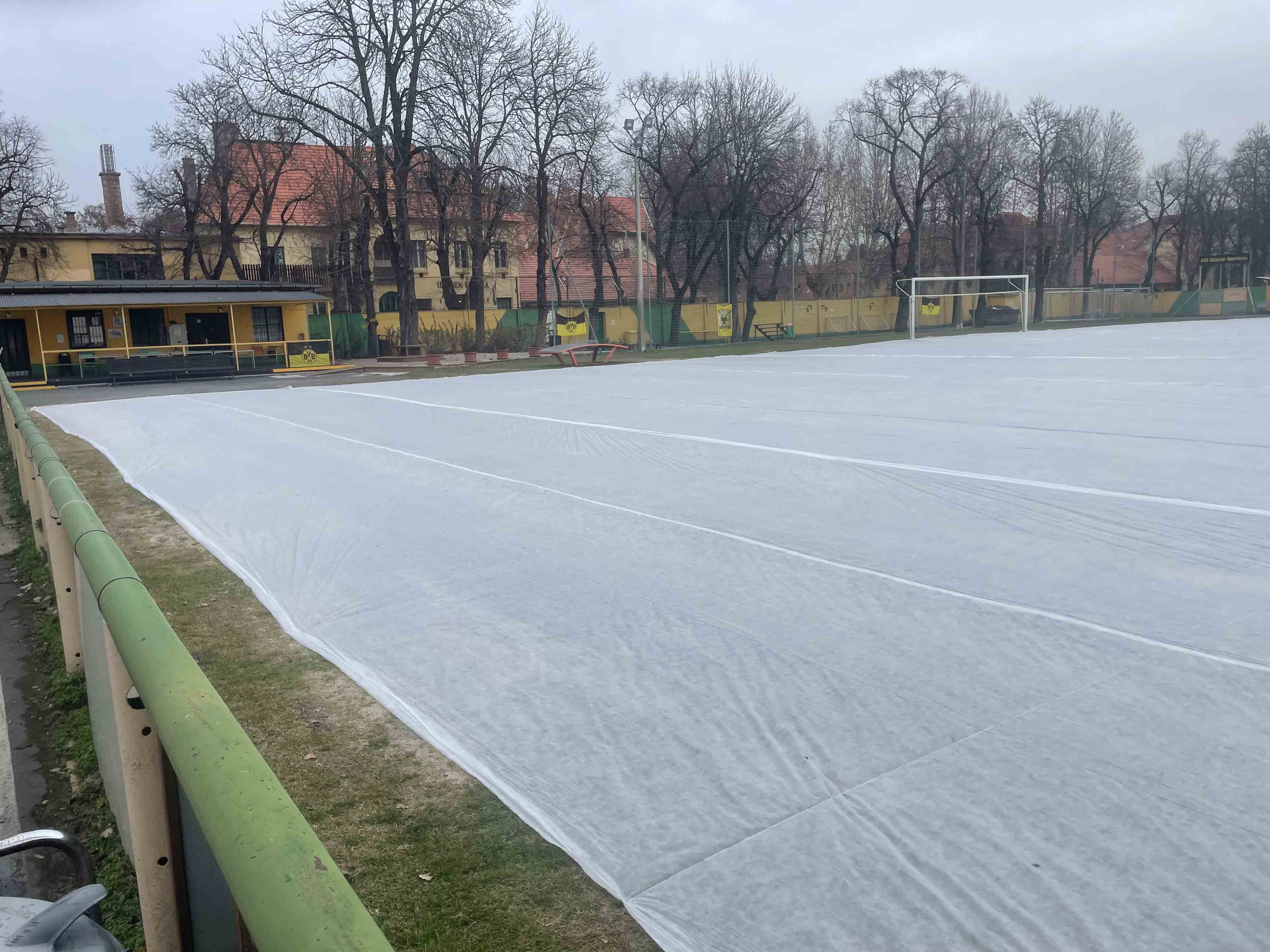 Pályánk gyepének helyrehozása érdekében új, szakértő csapatot bíztunk meg, akik a télre fóliával borították be a füvet, amivel tavaszra remélhetőleg kellően megerősödik: