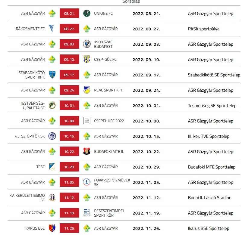(Elkészült az őszi sorsolásunk is, amely innen letölthető!)
