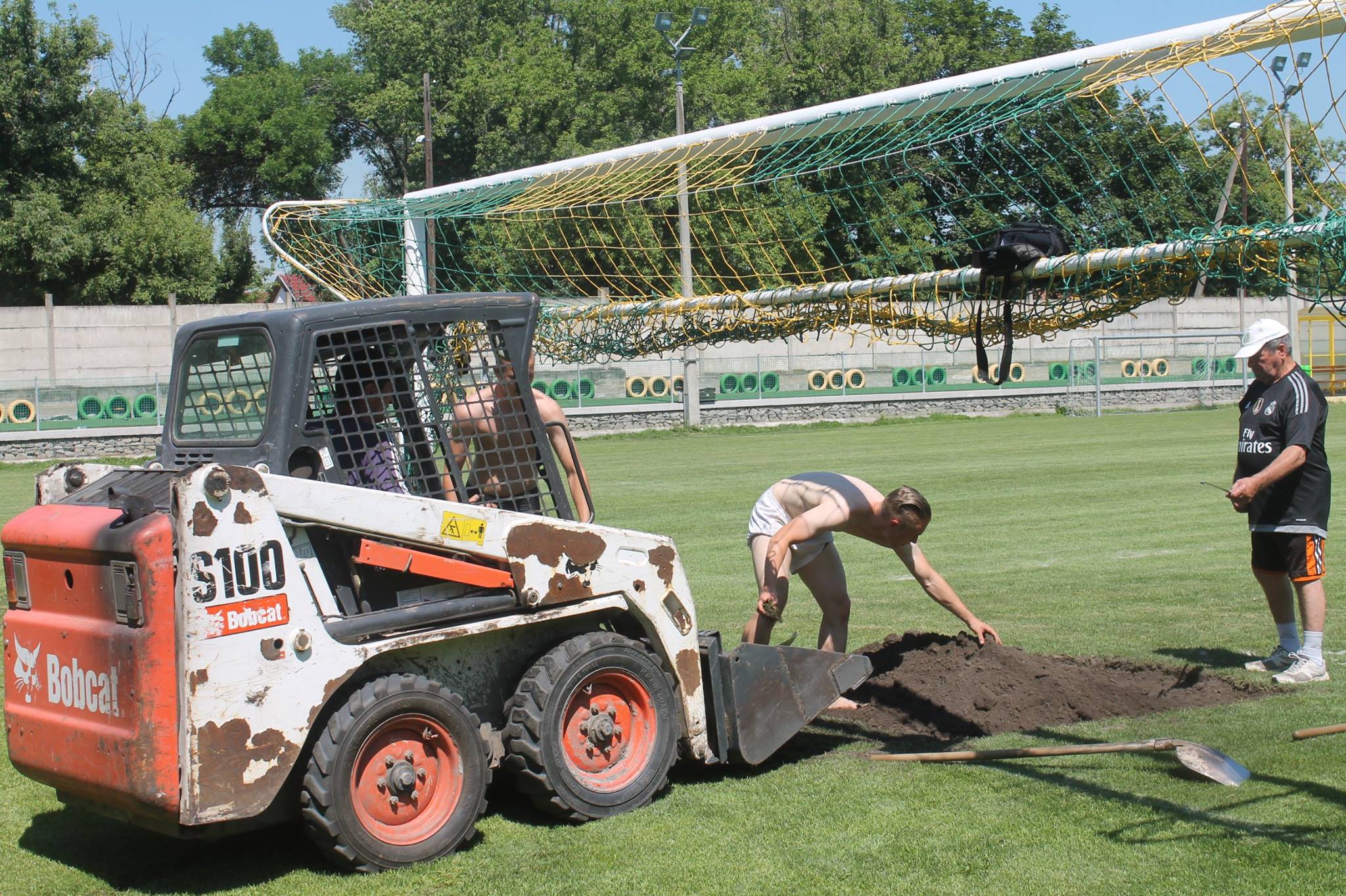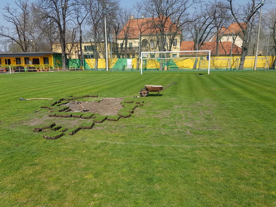 Pályánk gyepének helyrehozása érdekében új, szakértő csapatot bíztunk meg, akik a télre fóliával borították be a füvet, amivel tavaszra remélhetőleg kellően megerősödik: